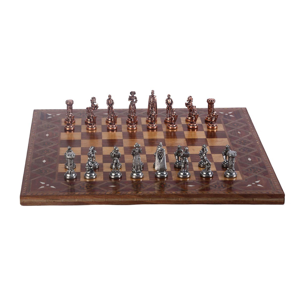 Orta Boy Metal İngiliz Satranç Takımı Antik ve El Yapımı Masif Ahşap Düz Satranç Tahtası (4118)