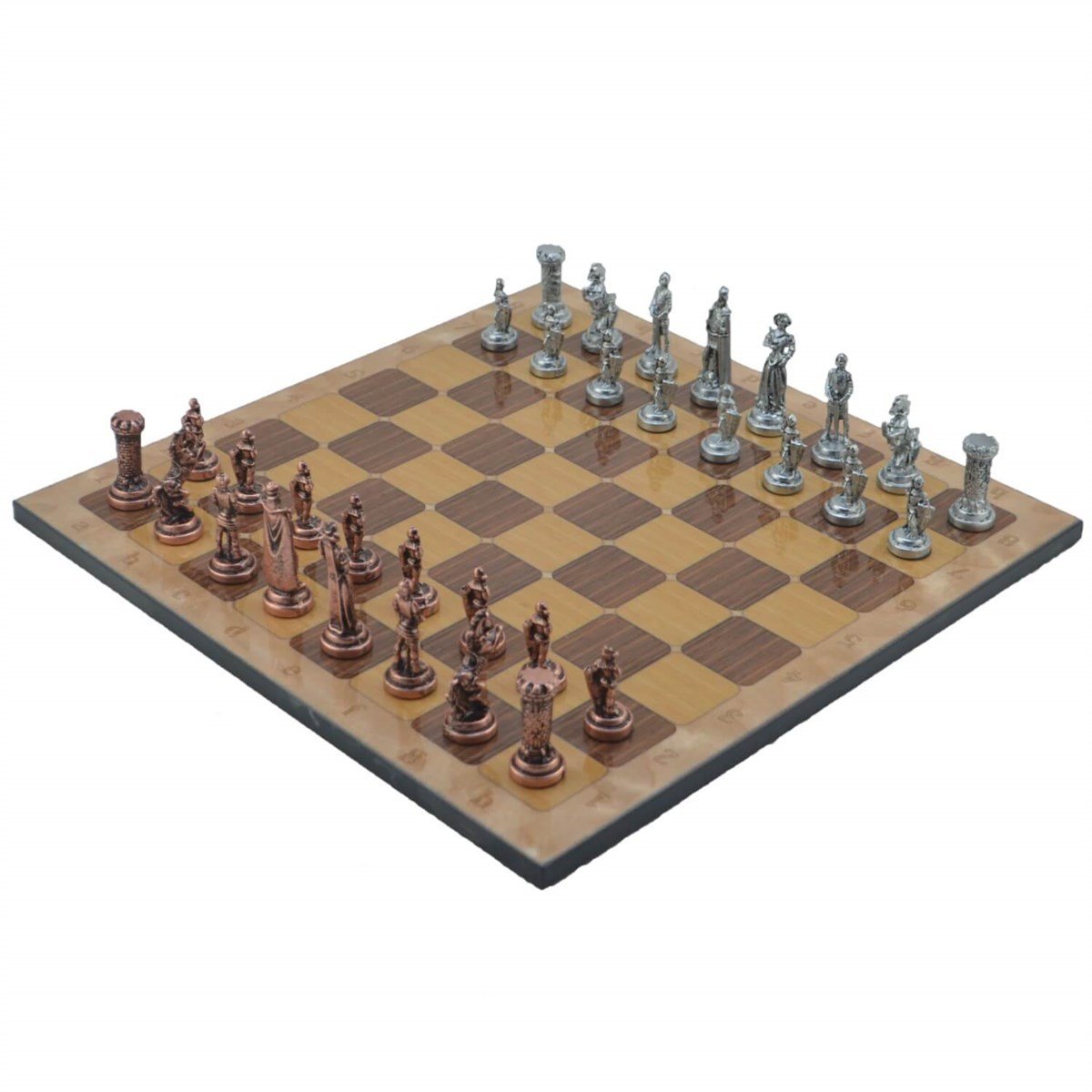 Gifthome Metal Satranç Takımı/Seti;Orta,İngiliz,Antik,Rustik Ceviz Desenli Satranç Tahtası